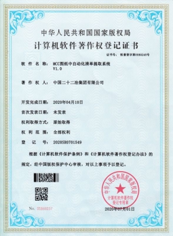 7月9日獲悉,中國二十二冶集團(tuán)編制的《MCC圖紙中自動化清單提取系統(tǒng)V1.0》獲得中華人民共和國國家版權(quán)局計(jì)算機(jī)軟件著作權(quán)登記證書。
