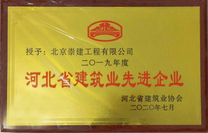2020年年初,崇建公司向河北省建筑業(yè)協(xié)會提出申報先進企業(yè)申請,經(jīng)河北省建筑業(yè)聯(lián)合會推薦、河北省建筑業(yè)專家委員會評審會審議,崇建公司被評定為“2019年度河北省建筑業(yè)先進企業(yè)”。
