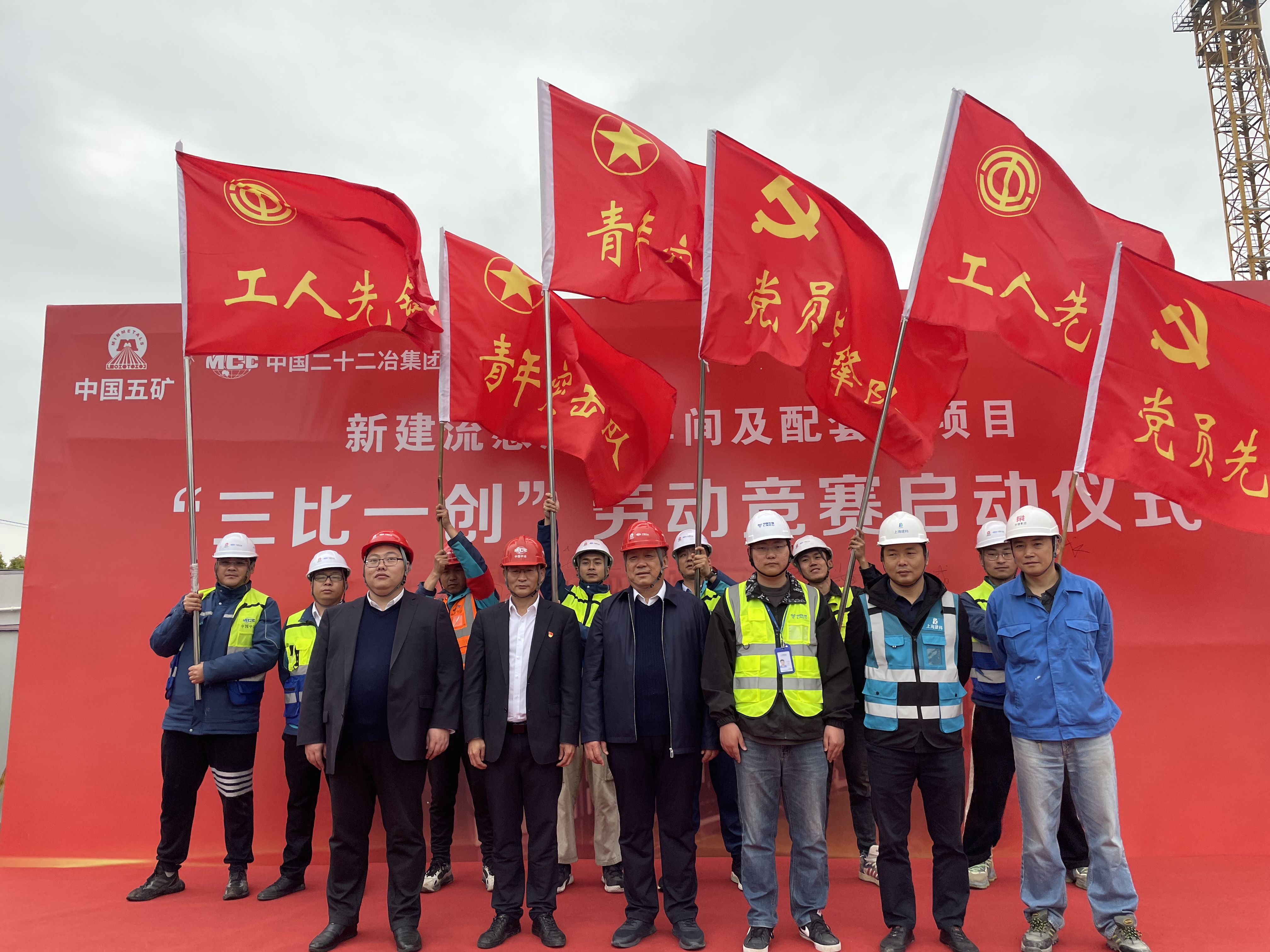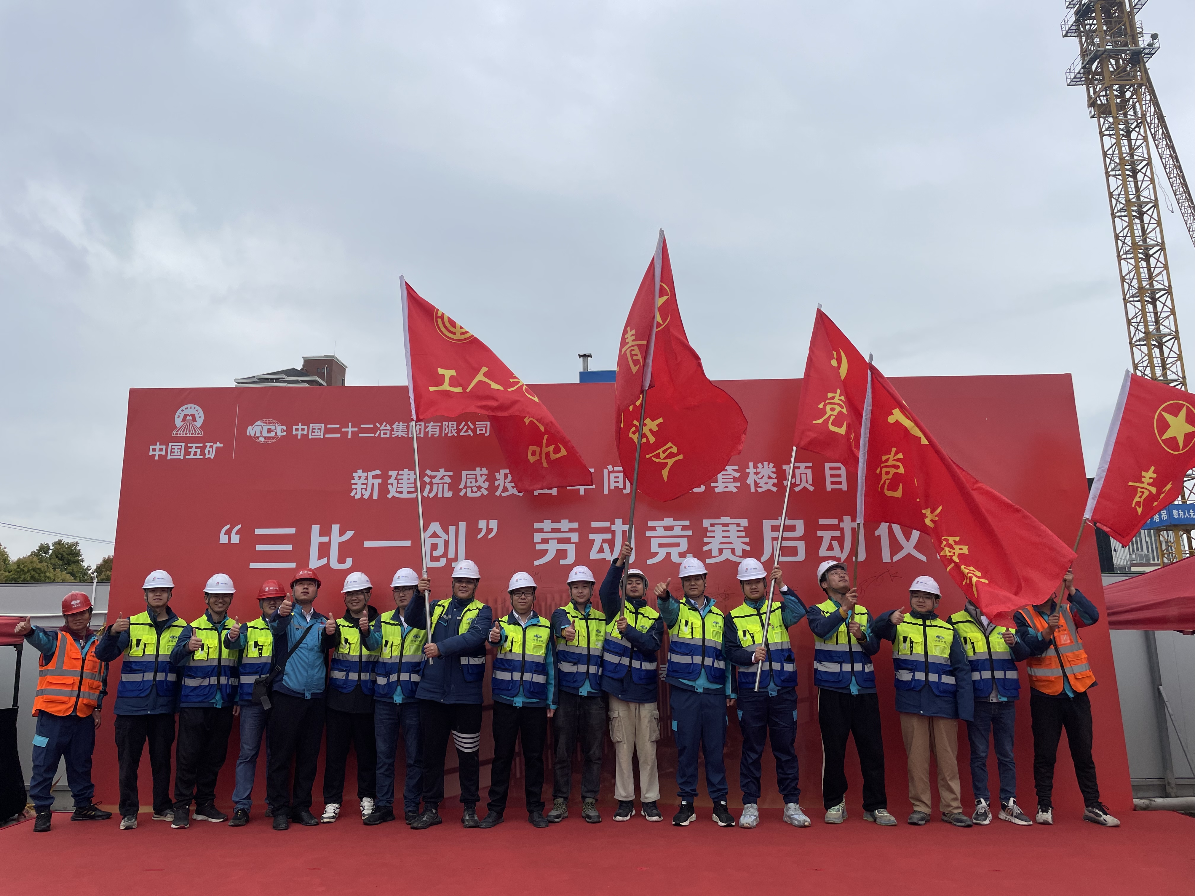 4月4日,中國二十二冶集團華東公司在新建流感疫苗車間及配套樓項目舉辦“三比一創(chuàng)”勞動競賽啟動儀式。中國二十二冶集團重大辦副指揮長張學軍,公司黨總支書記、工會主席、副總經(jīng)理趙書國,上海生物制品研究所有限責任公司李一成等出席本次活動。