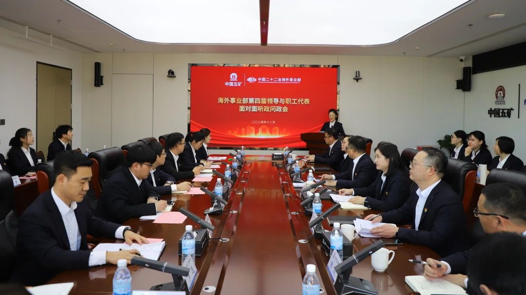 12月28日,海外事業(yè)部召開第四屆領導與職工代表面對面聽政問政會。海外事業(yè)部總經理、黨委副書記郭孔松代表領導班子通報2023年工作目標任務完成情況及取得成效。