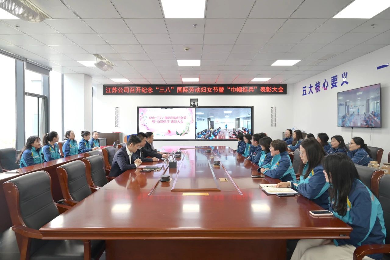 會議對獲得2024年度“巾幗標兵”的任玉榮、葛藝、程惠敏、周琪四位女職工進行表彰并頒獎,江蘇公司紀委書記韓子峰主持會議,江蘇公司黨委副書記(主持工作)、代理工會主席、副總經理何明偉宣讀表彰決定并為獲獎的“巾幗標兵”送上溫情的鮮花,江蘇公司副總經理(主持工作)、黨委副書記王東頒發(fā)獎狀。