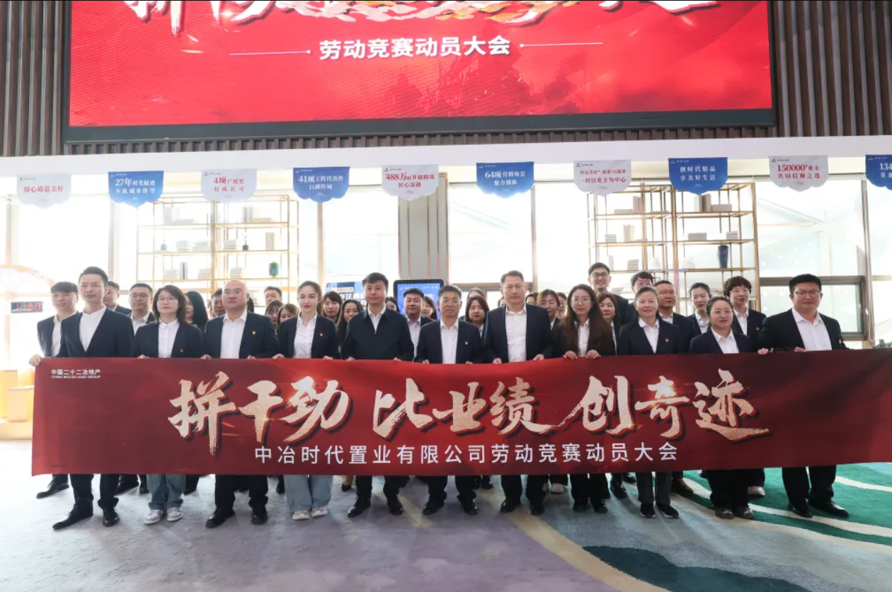 4月15日,時代置業(yè)公司舉行“拼干勁  比業(yè)績  創(chuàng)奇跡”勞動競賽動員大會,旨在以勞動競賽為抓手,激發(fā)全員攻堅熱情,加快公司資金回籠。本次競賽既是團隊齊心沖刺、攻堅克難的集結(jié)號角,更是攜手并肩、誓奪全勝的團結(jié)號令。中國二十二冶集團副總會計師、時代置業(yè)公司黨委書記、總經(jīng)理姚信福作動員講話,時代置業(yè)公司副總經(jīng)理、代理工會主席呂嚴(yán)宣讀《勞動競賽實施方案》并與豐潤項目、梧桐項目營銷負(fù)責(zé)人簽署軍令狀,時代置業(yè)公司營銷策劃部部長石慧主持大會儀式。