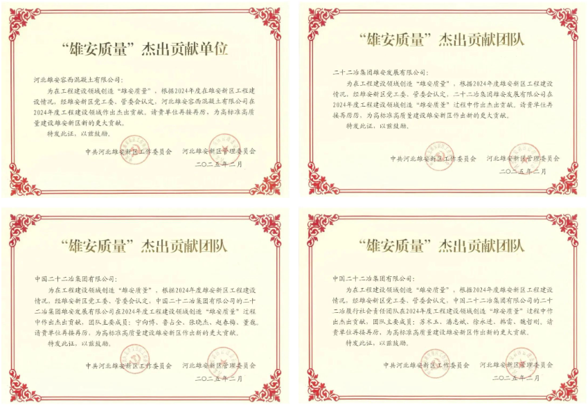 “雄安質(zhì)量”杰出貢獻單位:“雄安質(zhì)量”杰出貢獻單位