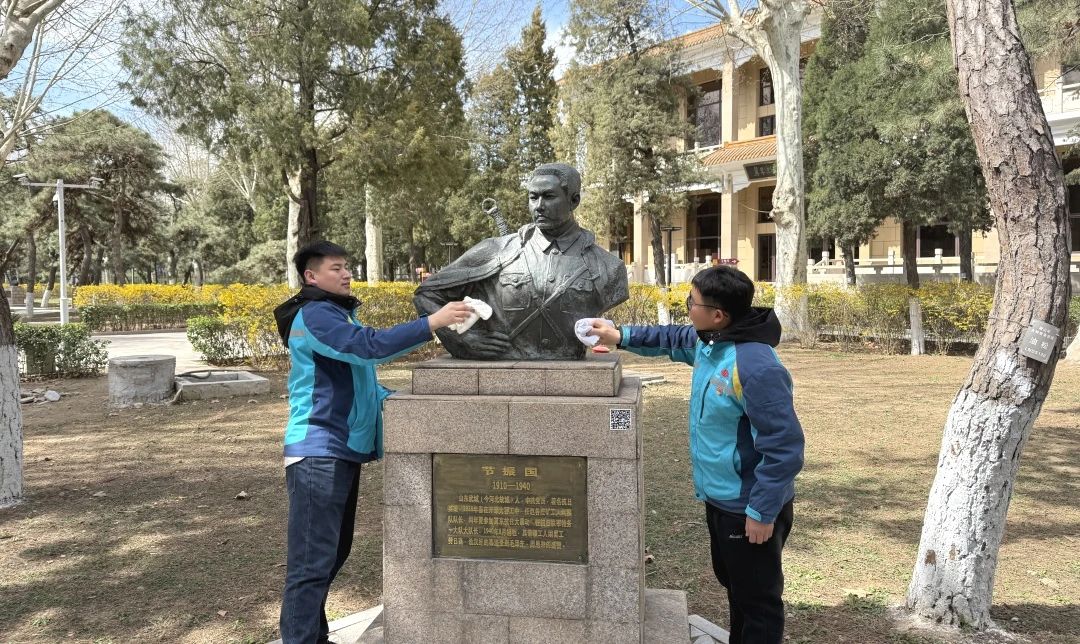 活動過程中,志愿者們滿懷敬意,分發(fā)好掃帚、抹布、垃圾袋等清潔工具后,大家迅速投入到清掃工作中。盡管天氣有些悶熱,但沒人有絲毫抱怨,有的志愿者認(rèn)真清掃著道路上的落葉和雜物,有的仔細(xì)擦拭著烈士墓碑,還有的對紀(jì)念堂的展柜進行清潔。經(jīng)過幾個小時的努力,烈士陵園煥然一新。干凈整潔的道路、一塵不染的墓碑,讓整個陵園顯得更加莊嚴(yán)肅穆。