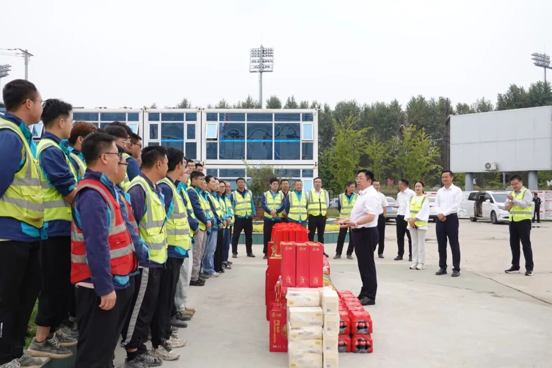 此外,中國二十二冶紀委書記田和平到西南公司川農項目和新津老碼頭TOD項目,副總經理趙山虎到金結公司中首特鋼項目及中鋅偉業項目,副總經理、董事會秘書鄭忠良到江蘇公司江北電子產業園項目帶班檢查并慰問一線員工。詳細了解了工程進度、現場管理、安全文明施工等情況,向在節日期間堅守一線的廣大員工致以誠摯的祝福,并為大家送上慰問品。