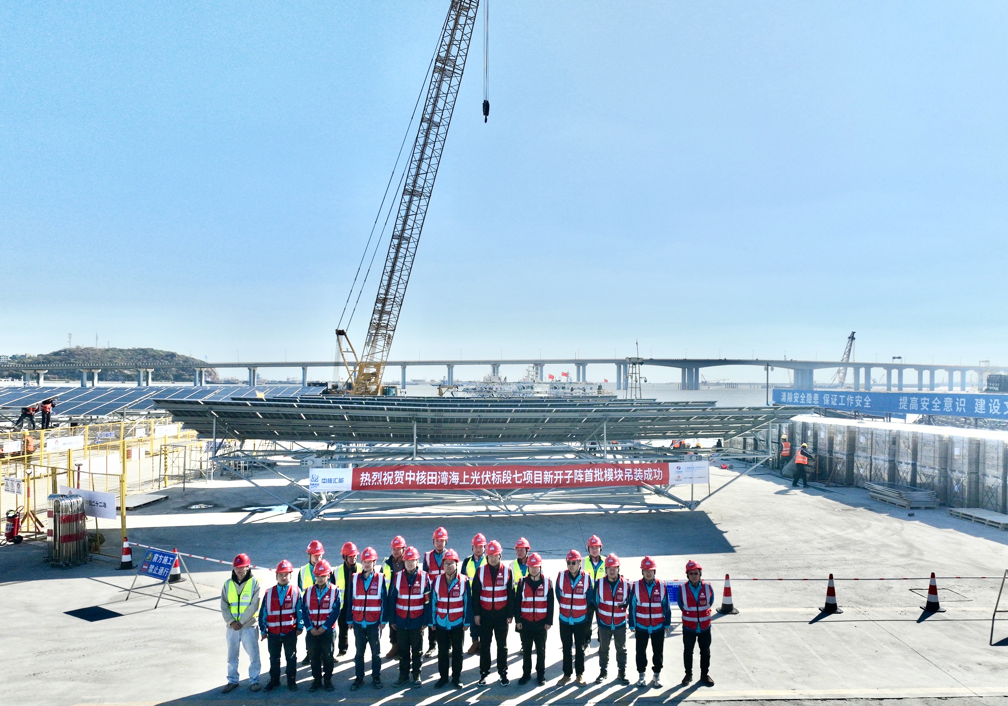 11月10日,在連云港田灣溫排水海域,西南分公司承建的連云港中核田灣光伏標(biāo)段七項(xiàng)目順利完成394子陣首榀鋼桁架模塊吊裝,標(biāo)志著項(xiàng)目建設(shè)取得實(shí)質(zhì)性進(jìn)展,邁入全面推進(jìn)新階段。